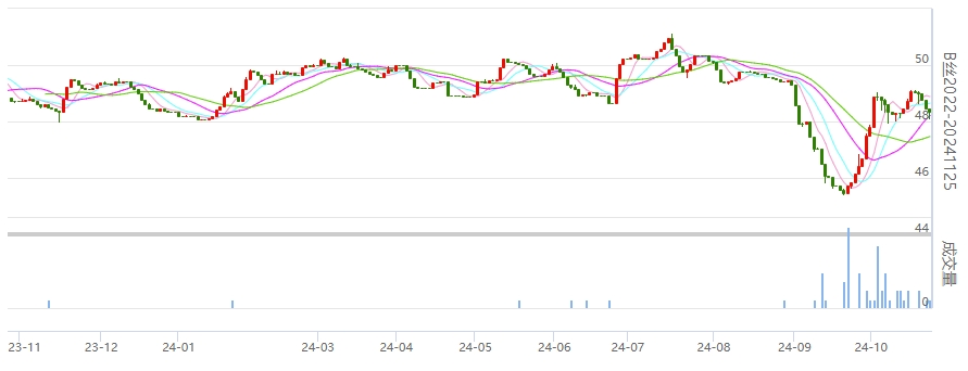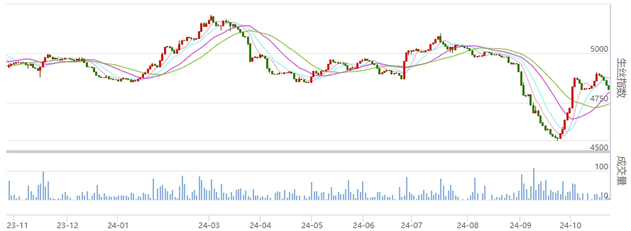 今日(2024年10月28日,周一)中國繭絲綢交易市場生絲電子指數(shù)下跌0.41%收于4818.84點。B絲2022D(商檢4A級生絲):241125合約下跌0.12萬元報收于48.36萬元;250325合約下跌0.24萬元報收于48.18萬元;250925合約下跌0.09萬元報收于47.73萬元。
