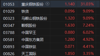 鋼鐵股全天漲幅居前,重慶鋼鐵股份漲超31%。消息面上,中國(guó)鋼鐵工業(yè)協(xié)會(huì)在10月25日召開信息發(fā)布會(huì)表示,將加快研究推進(jìn)產(chǎn)能治理和聯(lián)合重組。中鋼協(xié)已著手加快相關(guān)研究、開展專項(xiàng)調(diào)研,研究提出促進(jìn)聯(lián)合重組和完善退出機(jī)制的一攬子相關(guān)政策建議。