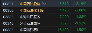 國際油價下挫,石油股集體走弱,中石油、中石化跌約2%。消息面上,盡管近期中東局勢緊張,但以色列最新對伊朗的報復(fù)性打擊繞過了石油和核設(shè)施,導(dǎo)致國際原油市場的風(fēng)險溢價迅速消散。且讓市場感到擔(dān)憂的是,短線油價下跌速率較大。本周僅兩個交易日,WTI及布倫特原油期貨主連均累跌超6%,交易層面的破位風(fēng)險驟增