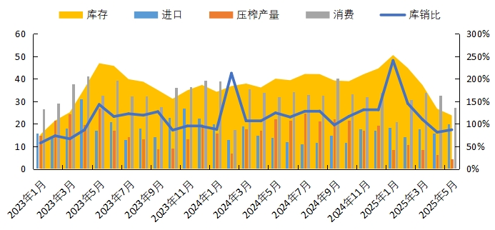 圖2:進(jìn)口菜油月度平衡表(萬噸)