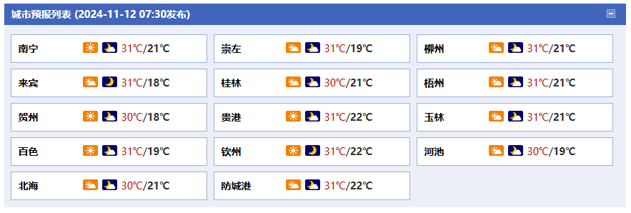 廣西氣象臺(tái)12日05時(shí)發(fā)布預(yù)報(bào):