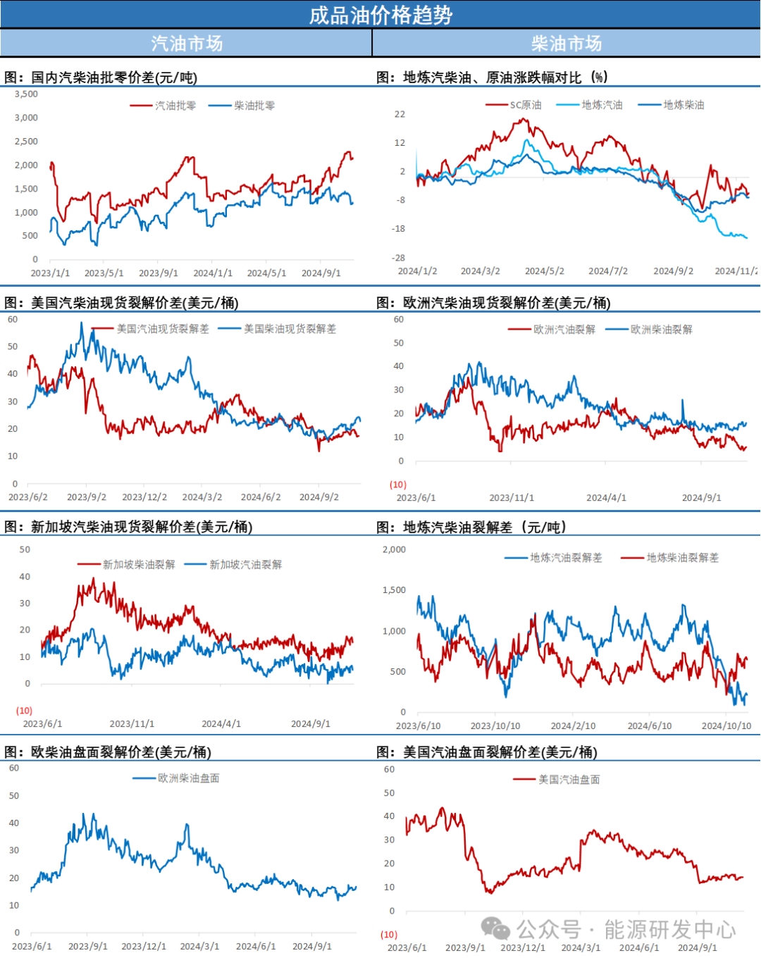 歐佩克+減產(chǎn)周期內(nèi)構(gòu)建的長期區(qū)間底部支撐變得越來越弱,在11月初歐佩克+早早做出再延長減產(chǎn)一個月到今年年底的決定之后,短期內(nèi)已經(jīng)很難再有提振市場信心的舉措,另外地緣層面對供應(yīng)端擾動的風(fēng)險也在下降,以色列稱特朗普勝選之后伊朗已經(jīng)放棄了對以色列的報復(fù)性,地緣層面溫明顯,原油市場供需層面也缺乏亮點提振市場,油價反彈能量明顯不足,阻止油價下行的因素越來越少。不過昨晚油價的走勢可以看出,在油價再次觸及歐佩克+減產(chǎn)底低點之后,還是有資金選擇了離場觀望,這也意味著雖然長期區(qū)間低位的支撐力度在逐步減弱,但市場暫時還沒有形成破位下行共識,高頻指標(biāo)近期也有小幅回穩(wěn),市場仍需要時間來做選擇,注意節(jié)奏把握,謹(jǐn)慎參與。