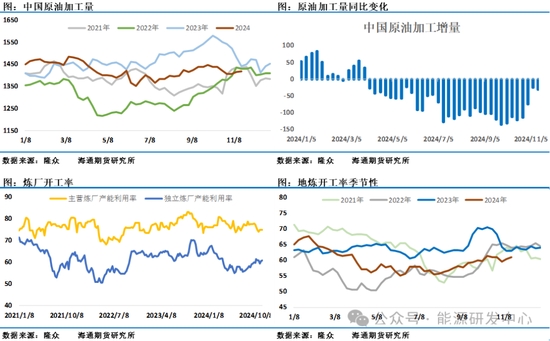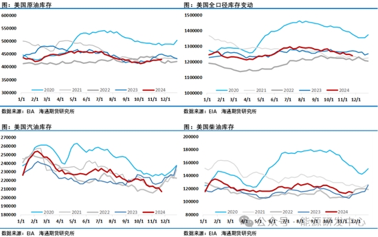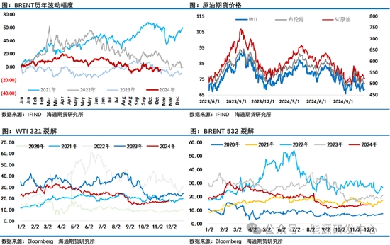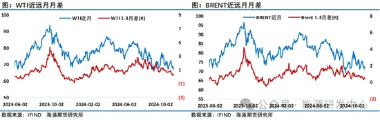 供應(yīng)方面歐佩克月報(bào)顯示歐佩克日產(chǎn)量9月修正為 2606.9萬桶,10月為2653.5萬桶,較上月增加46.6萬桶,主要受到利比亞的推動(dòng)2024年10月俄羅斯的原油日產(chǎn)量微增9000桶,達(dá)到約901萬桶/日,略高于OPEC+集團(tuán)的配額。俄羅斯已承諾將通過今年10月和11月以及明年3月至9月的減產(chǎn)來補(bǔ)償自4月以來的超產(chǎn)。另外OPEC+成員國對(duì)產(chǎn)量限制的遵守情況備受關(guān)注,特別是伊拉克和哈薩克斯坦,這兩個(gè)國家一直在超額生產(chǎn),并已承諾進(jìn)行額外減產(chǎn)以補(bǔ)償超出部分。從市場(chǎng)交易來看對(duì)于中長(zhǎng)期原油市場(chǎng)供應(yīng)過剩形成了一致預(yù)期。