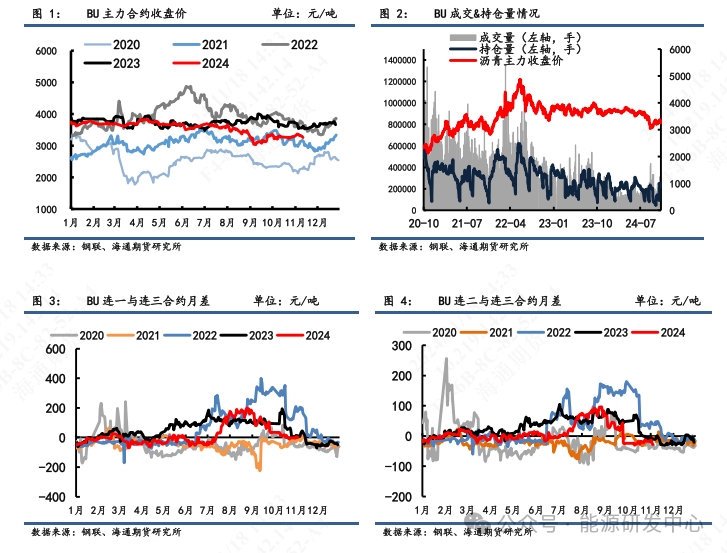 截止11月15日,瀝青主力合約收于3262元/噸,環(huán)比11月8日3345元/噸下跌83元/噸,跌幅2.5%;單邊成交量228988手,環(huán)比增加12595手;持倉量226376手,環(huán)比減少26550手。價差結(jié)構(gòu)上,BU連一與連三合約價差為-1元/噸,環(huán)比11月8日-3元/噸略微上漲。