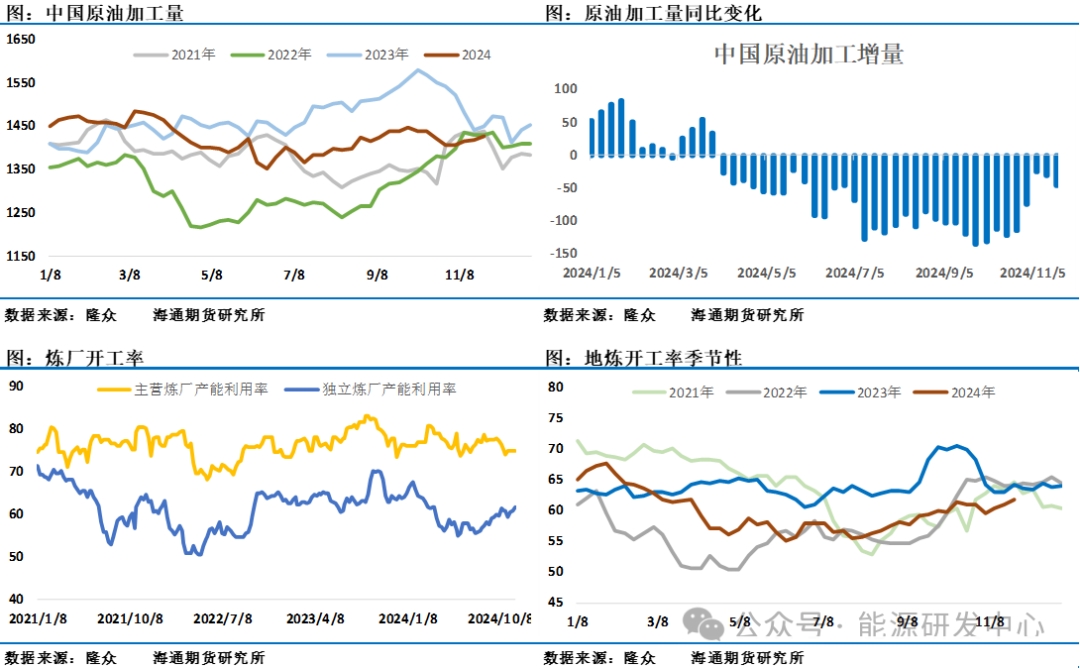 另一個(gè)比較重要的國(guó)家伊朗,在特朗普選擇美國(guó)參議員盧比奧擔(dān)任國(guó)務(wù)卿,市場(chǎng)很快意識(shí)到美國(guó)可能會(huì)重新加強(qiáng)對(duì)伊朗和委內(nèi)瑞拉的石油制裁。在特朗普的第一任期內(nèi),對(duì)伊朗做出制裁決定后,伊朗原油產(chǎn)量暴跌150萬桶/日,而在總統(tǒng)拜登任職期間,對(duì)伊朗制裁明顯有放松,這讓伊朗原油恢復(fù)了絕大部分因制裁而導(dǎo)致的產(chǎn)量損失,并恢復(fù)了大量出口,中國(guó)已成為其主要買家。而隨著特朗普重新當(dāng)選總統(tǒng),以及其提名盧比奧作為國(guó)務(wù)卿人選,加大對(duì)伊朗制裁迅速成為市場(chǎng)認(rèn)為的選擇,雖然近期伊朗方面表現(xiàn)積極主動(dòng)示好,但被制裁的風(fēng)險(xiǎn)仍然非常高,最新一期的歐佩克月報(bào)顯示伊朗10月原油產(chǎn)量出現(xiàn)回落,對(duì)中國(guó)出口量也有所減少,后續(xù)關(guān)注這一變化的持續(xù)性。