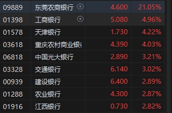 內(nèi)銀股普遍上漲,工商銀行漲超近5%。中信證券(21.4, 0.00, 0.00%)研報認為,12月重要會議結(jié)束后,市場對于政策的博弈告一段落,人民幣大類資產(chǎn)配置框架下思考,銀行股仍將是確定性強的方向,年底和年初將步入保險開門紅增配季,股息高、波動低、經(jīng)營穩(wěn)的銀行品種預(yù)計仍是險資增配方向。