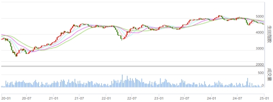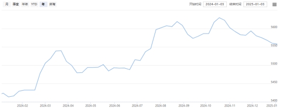 上圖為反映國內(nèi)整體商品價格的文華商品指數(shù)2024年的走勢情況。