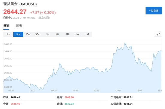 2024年,在美國貨幣政策寬松、避險需求上升以及全球央行持續(xù)買入的推動下,金價曾創(chuàng)下歷史新高。截止發(fā)稿,現(xiàn)貨黃金價格為2644.27美元/盎司。