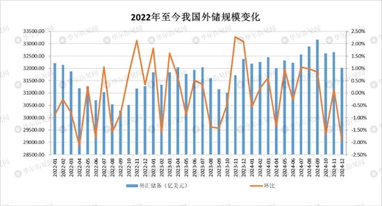 截至2024年12月末,我國外匯儲備規(guī)模為32023.6億美元,較11月末下降635億美元,降幅為1.94%。