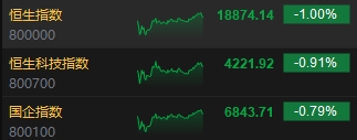 1月13日消息,港股三大指數(shù)午后跌幅收窄,截至收盤(pán),恒生指數(shù)(18874.141, -190.15, -1.00%)跌1%,報(bào)18874.14點(diǎn),恒生科技指數(shù)(4221.92, -38.90, -0.91%)跌0.91%,國(guó)企指數(shù)跌0.79%。盤(pán)面上,科網(wǎng)股普遍下跌,百度、小米跌超2%,美團(tuán)、阿里巴巴跌近2%;蘋(píng)果概念股跌幅居前,丘鈦科技(5.31, -0.30, -5.35%)跌超5%;恒大物業(yè)(0.81, 0.10, 14.09%)追討134億元存款案已判決,恒大物業(yè)漲超14%;半導(dǎo)體概念股逆勢(shì)上漲,中芯國(guó)際(34.35, 2.00, 6.18%)漲超6%;石油、黃金、有色金屬等大宗板塊漲勢(shì)活躍,中石油、中海油(19.24, 0.42, 2.23%)漲超2%。