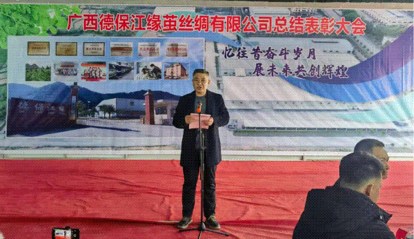 憶往昔奮斗歲月,展未來共創(chuàng)輝煌。1 月 19 日,廣西德保江緣繭絲綢有限公司總結(jié)表彰大會舉行,公司董事長周時慶發(fā)表講話。公司對過去一年中表現(xiàn)突出的團隊和個人進行了表彰,以激勵全體員工在新的一年里繼續(xù)拼搏奮進。