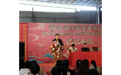 祝賀河池市桂宜繭絲有限公司成立一周年!1月20日,公司2024工作總結(jié)大會暨2025迎新答謝晚會舉行,表彰員工、員工抽獎、文藝活動等形式精彩紛呈。