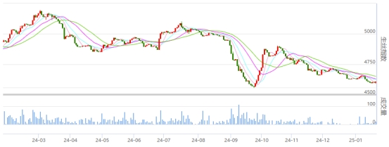 今日(2025年01月21日,周二)中國繭絲綢交易市場生絲電子指數(shù)上漲0.14%收于4609.37點。B絲2022D(商檢4A級生絲):250125合約報平收于46.95萬元;250325合約上漲0.39萬元報收于46.29萬元;250925合約上漲0.24萬元報收于45.30萬元。