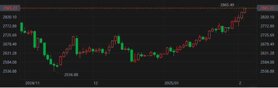 發(fā)稿前不久,現(xiàn)貨黃金價格升破2860關(guān)口,最高報每盎司2865.49美元,已連續(xù)第五個交易日刷新歷史紀(jì)錄,年初至今累漲超9%,而前一年已累漲逾27%。