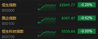 3月4日消息,港股三大指數(shù)低開高走,截至收盤,恒生指數(shù)(22941.77, -64.50, -0.28%)跌0.28%,報22941.77點,恒生科技指數(shù)(5535.64, -0.22, -0.00%)0%平收,國企指數(shù)跌0.62%。盤面上,科網(wǎng)股漲跌不一,網(wǎng)易漲超2%,百度集團(tuán)、騰訊控股(491, 7.80, 1.61%)、嗶哩嗶哩漲超1%,阿里巴巴跌近2%;汽車板塊整體下跌,比亞迪股份(339, -24.60, -6.77%)跌超6%;機(jī)器人概念股普漲,優(yōu)必選漲逾10%。