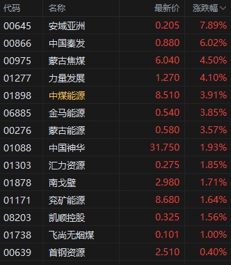 煤炭板塊漲幅居前,安域亞洲漲超7%。據(jù)CCTD中國(guó)煤炭市場(chǎng)網(wǎng),近期煤炭供給開始收縮,而需求則有所改善,市場(chǎng)悲觀情緒逐漸緩解,支撐價(jià)格企穩(wěn)反彈。