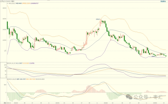 鄭棗主力CJ2505合約,周五收盤報(bào)8975元/噸, 較上周期價(jià)下跌180元/噸,持倉(cāng)量108009手,較上周減少3403手。技術(shù)上,周線級(jí)別MACD紅色能量柱縮量,KDJ指標(biāo)下行,指標(biāo)于零軸下方收斂。