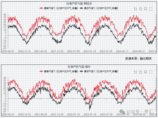 本周產(chǎn)區(qū)氣溫上升,晴天為主,喀什地區(qū)氣溫在3-20℃,阿克蘇、阿拉爾地區(qū)氣溫在1-20℃;未來(lái)一周產(chǎn)區(qū)有陰雨天氣。