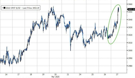 周四,美股早盤時(shí),紐約期金盤中漲約1.6%至3100美元上方,創(chuàng)歷史新高。現(xiàn)貨黃金也漲超1.26%,刷新歷史高位至3059.62美元。