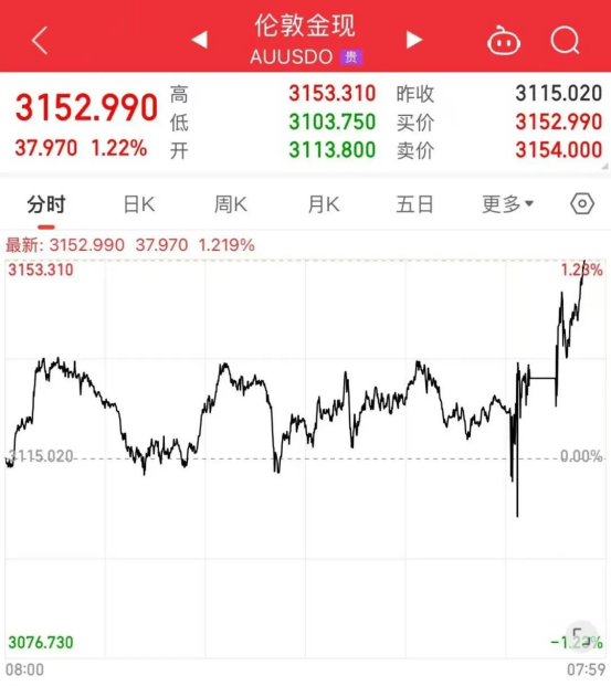 避險資產(chǎn)上漲,紐約期金首次觸及3200美元/盎司,日內(nèi)漲1.73%?,F(xiàn)貨黃金創(chuàng)歷史新高,突破3150美元/盎司。