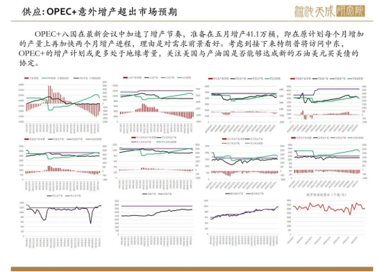 供應(yīng):OPEC+八國會議意外加速了增產(chǎn)計劃,在5月將增產(chǎn)進程加快了兩個月,超出市場預(yù)期,或更多出于地緣政治考量,關(guān)注特朗普的中東訪問計劃。