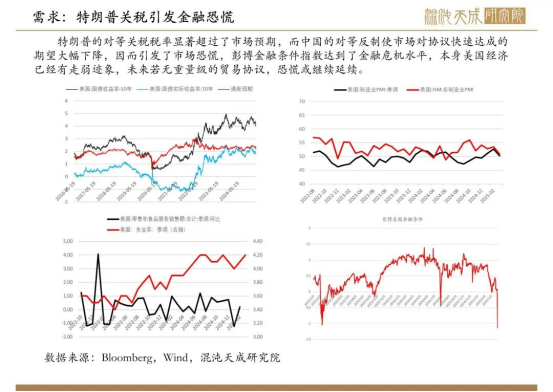 油價在增產(chǎn)超預(yù)期和關(guān)稅打壓全球經(jīng)濟都大幅加強的局面下突破下行,我們認為全面的貿(mào)易協(xié)議很難快速達成,關(guān)稅對全球經(jīng)濟的利空影響將繼續(xù)發(fā)酵甚至有演變成經(jīng)濟危機的可能,因此油價繼續(xù)看跌。