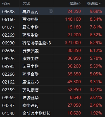 生物醫(yī)藥板塊全線走強,再鼎醫(yī)藥漲超9%。廣發(fā)證券(9.64, 0.00, 0.00%)策略研報稱,港股創(chuàng)新藥風口漸近。研報表示,當前資本市場的關(guān)注焦點正悄然從傳統(tǒng)的地產(chǎn)和政策周期轉(zhuǎn)向更具長期戰(zhàn)略意義的中美科技博弈。我們建議重視港股創(chuàng)新藥的配置價值,原因在于:中國創(chuàng)新藥出海的全球競爭優(yōu)勢正在凸顯;當前關(guān)稅政策對創(chuàng)新藥影響遠小于其他成長性板塊;政策及監(jiān)管態(tài)度逐步轉(zhuǎn)向?qū)Π鍓K有利的情形。