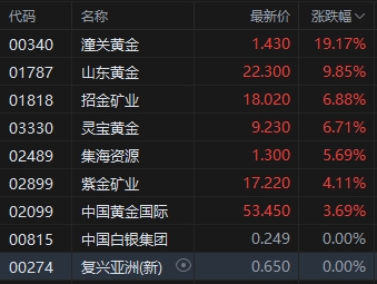 黃金股全天強勢,潼關(guān)黃金漲超19%?,F(xiàn)貨黃金早盤拉升,突破前高并將歷史高位刷新至3245.45美元/盎司,較日低反彈超35美元。高盛再度調(diào)高金價預(yù)測:年底見3700美元,極端情況下可能觸及4500美元。