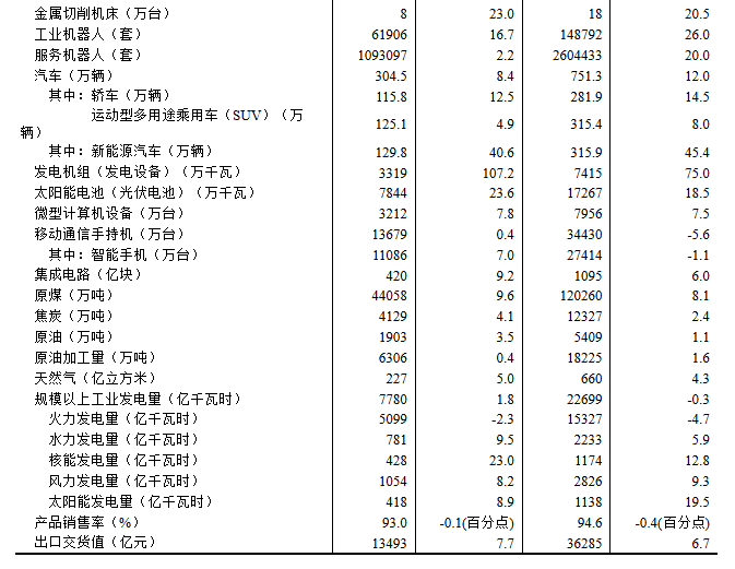 分產(chǎn)品看,3月份,規(guī)模以上工業(yè)623種產(chǎn)品中有405種產(chǎn)品產(chǎn)量同比增長。其中,鋼材13442萬噸,同比增長8.3%;水泥15788萬噸,增長2.5%;十種有色金屬692萬噸,增長3.7%;乙烯319萬噸,增長6.1%;汽車304.5萬輛,增長8.4%,其中新能源汽車129.8萬輛,增長40.6%;發(fā)電量7780億千瓦時(shí),增長1.8%;原油加工量6306萬噸,增長0.4%。