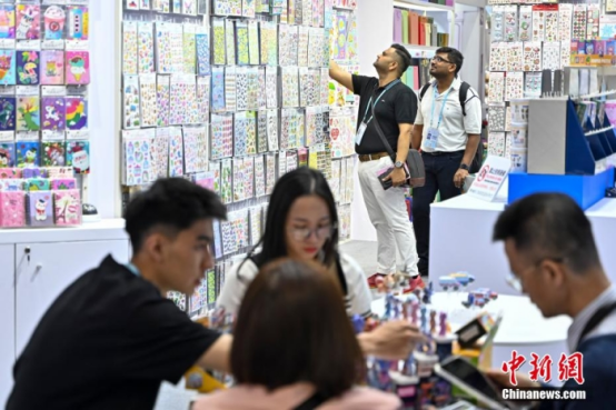 4月27日,在廣州舉辦的第137屆中國(guó)進(jìn)出口商品交易會(huì)(廣交會(huì))第二期結(jié)束。第三期將于5月1日至5月5日舉辦。圖為境外采購(gòu)商在禮品及贈(zèng)品展區(qū)挑選產(chǎn)品。中新社記者 陳驥旻 攝
