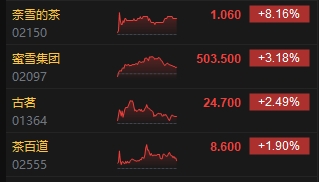 茶飲股集體上行,奈雪的茶漲超8%。現(xiàn)制茶飲品牌滬上阿姨4月28日起正式開啟招股,全球發(fā)行241.13 萬股,每股招股價95.57至113.12港元。截至今早10點左右,滬上阿姨孖展額已增至 48.62億元,孖展超購約 178.24倍。國金證券表示,近期頭部茶飲企業(yè)陸續(xù)上市,行業(yè)競爭加劇背景下,看好低價格帶格局穩(wěn)定賽道,以及中價格帶產(chǎn)品性價比高供應(yīng)鏈扎實的企業(yè)。
