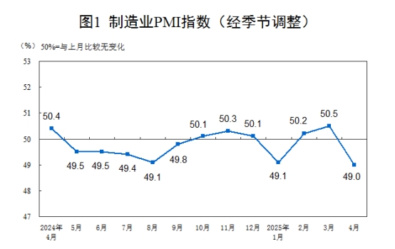 4月份,制造業(yè)采購經(jīng)理指數(shù)(PMI)為49.0%,比上月下降1.5個百分點,制造業(yè)景氣水平有所回落。