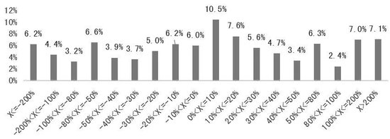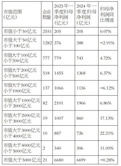 表為上市公司市值范圍及業(yè)績(jī)同比增速