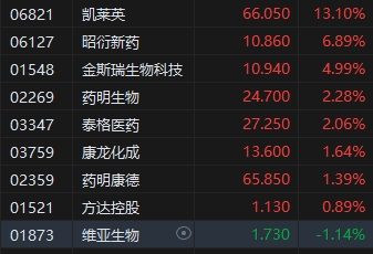 CXO概念股多股大漲,凱萊英漲超13%。天風(fēng)證券研報(bào)指,行業(yè)底部基本企穩(wěn),隨著訂單增長帶動(dòng)下有望筑底回升。摩根士丹利研究報(bào)告指,對(duì)中國醫(yī)藥行業(yè)持樂觀態(tài)度,因國內(nèi)推出一系列有利政策,包括對(duì)創(chuàng)新的全方位支援。另外,大多數(shù)國內(nèi)醫(yī)藥公司對(duì)美國出口的依賴低,令該行業(yè)受地緣政治和美國藥品定價(jià)不確定性的影響相對(duì)較低。