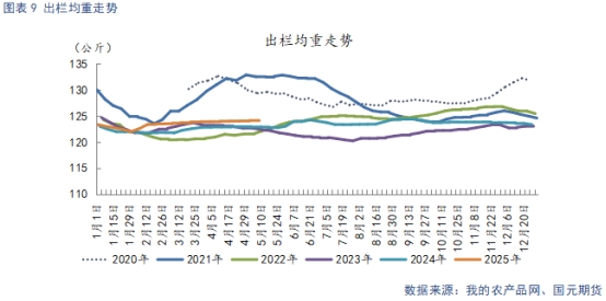 截止5月19日,生豬出欄均重124.12公斤,較上周持平。當(dāng)前出欄均重處于近四年高位,單頭生豬提供的肉量增加,隨著氣溫不斷升高,養(yǎng)殖端加快大豬出欄速度,供給端面臨量重雙高的局面。??