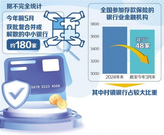 中小銀行是我國(guó)金融體系的重要組成部分,也是推動(dòng)區(qū)域經(jīng)濟(jì)發(fā)展和服務(wù)實(shí)體經(jīng)濟(jì)的生力軍。今年以來,我國(guó)中小銀行改革重組步伐加快,多地的村鎮(zhèn)銀行、農(nóng)商銀行等金融機(jī)構(gòu)被吸收合并重組,將在金融機(jī)構(gòu)名單上加速消失。據(jù)不完全統(tǒng)計(jì),今年前5月,約180家中小銀行獲批復(fù)合并或解散。