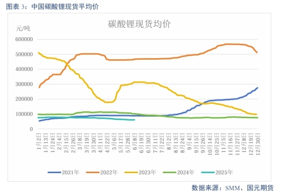6月6日,中國電池級碳酸鋰現(xiàn)貨均價為60200元/噸,較上周減500元/噸。