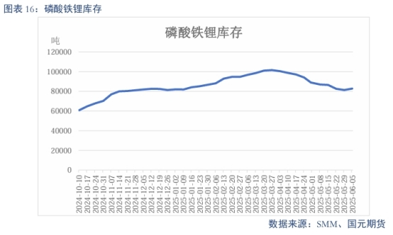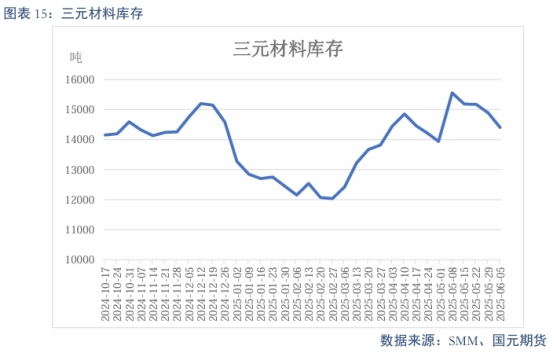 截至6月5日,SMM三元材料庫存為14406噸,較上周減488噸;磷酸鐵鋰庫存為82800噸,較上周增1422噸。