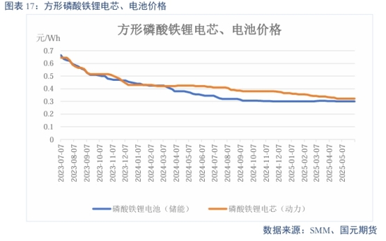 截至6月6日,方形動力磷酸鐵鋰電芯價格為0.322元/Wh,較上周持平;方形儲能電池價格為0.3元/Wh,較上周持平。