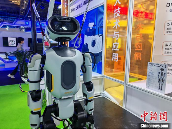 展商現(xiàn)場展示可實現(xiàn)表情、語言、肢體一體化反饋的具身智能人形機(jī)器人