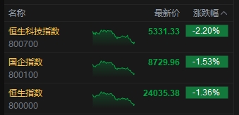 6月12日消息,港股三大指數(shù)全線下挫。截至收盤,恒生指數(shù)(24035.379, -331.56, -1.36%)跌1.36%,報(bào)24035.38點(diǎn),恒生科技指數(shù)(5331.33, -119.87, -2.20%)跌2.2%,國企指數(shù)跌1.53%。盤面上,科網(wǎng)股集體下跌,快手跌超5%,阿里巴巴跌、小米集團(tuán)跌超3%;創(chuàng)新藥概念逆市大漲,中國生物制藥(5.69, 0.92, 19.29%)漲超19%;黃金股普漲,紫金礦業(yè)(20, 0.94, 4.93%)漲近5%;螞蟻金服部分概念股大漲,云鋒金融(2.73, 0.96, 54.24%)漲超54%;新能源車企走弱,小鵬汽車跌超6%。