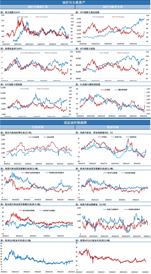 從各自官方的發(fā)聲和實(shí)際戰(zhàn)況來看,以伊之間的相互打擊沒有緩解跡象,包括繼續(xù)攻擊對方的能源設(shè)施,周二以色列襲擊了伊朗雷伊煉油廠(德黑蘭煉油廠),該煉廠產(chǎn)能為每日22.5萬桶。此前伊朗多輪導(dǎo)彈打擊了以色列的海法煉油廠,該煉油廠供應(yīng)了以色列60%的成品油,目前所有設(shè)施已被關(guān)閉。而隨著戰(zhàn)爭的深入,有美媒報(bào)道美國襲擊伊朗成為特朗普考慮的選項(xiàng)之一,特朗普越來越傾向于打擊伊朗的核設(shè)施,而非支持外交解決方案的想法,而伊朗也一直在對攻擊美國軍事基地做準(zhǔn)備。昨天阿曼灣發(fā)生的油輪相撞事件也讓市場緊張,卡塔爾要求液化天然氣船在霍爾木茲海峽外等待裝貨,整體來看隨著地緣局勢的升溫讓原油市場維持著高地緣溢價(jià)表現(xiàn)。