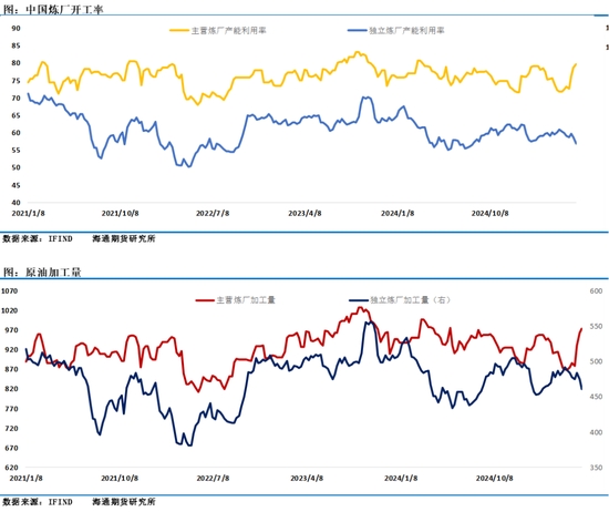 進(jìn)入6月之后中國(guó)原油加工量出現(xiàn)明顯反彈,緩解了5月份原油供應(yīng)緊張的局面。不過(guò)主營(yíng)和地方煉廠表現(xiàn)分化明顯,地方煉廠因原油暴漲導(dǎo)致煉油利潤(rùn)明顯被擠壓,停產(chǎn)檢修力度加大,加工量有所下降,而主營(yíng)煉廠連續(xù)快速提產(chǎn),從三方數(shù)據(jù)來(lái)看其原油供應(yīng)穩(wěn)定性明顯超過(guò)了地方煉廠,成本管控比地?zé)拑?yōu)勢(shì)明顯,這樣的變化可能為接下來(lái)6月底7月初的成品油市場(chǎng)帶來(lái)操作機(jī)會(huì)。