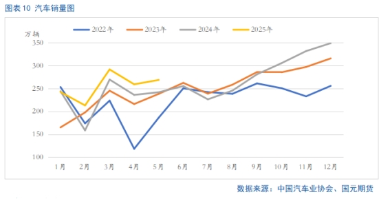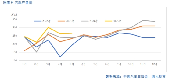 步入三季度,隨著夏季高溫天氣到來,終端車市需求步入淡季,后期國內(nèi)的輪胎產(chǎn)銷或面臨季節(jié)性轉弱趨勢。與此同時,當前在外圍市場地緣沖突以及全球經(jīng)濟不確定性加大的背景下,輪胎的出口訂單后期存在縮減的預期,輪胎成品庫存去庫困難,對上游天膠利好有限。但是值得一提的是,5月中下旬,歐盟委員會對進口自我國乘用車及輕卡輪胎啟動反傾銷調(diào)查,在該政策落地之前,出口至歐洲的輪胎或存在“搶出口”預期,因此需求端或存在階段性好轉,但是中長期來看,在外圍市場不確定因素較多的背景下,或對需求存在一定的抑制,因此我們認為下半年輪胎市場整體需求對天膠拉動有限。