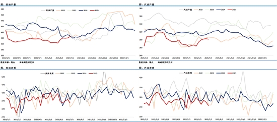 中國原油加工量連續(xù)5周高于去年同期,歸功于主營煉廠開工率繼續(xù)刷新5年同期高位,值得一提的是雖然原油加工量提升明顯,但增量相當一部分是去了化工鏈條,數(shù)據(jù)顯示今年中國汽柴油消費明顯低于去年同期,中國原油實際需求增量仍非常有限。近期成品油市場的亮點是歐美柴油表現(xiàn)強勁,美國柴油消費反彈及庫存低位均支撐了柴油價格的走強。盡管消費旺季階段整體表現(xiàn)尚可,但已經(jīng)很難匹配供應端后續(xù)的增產(chǎn)壓力。