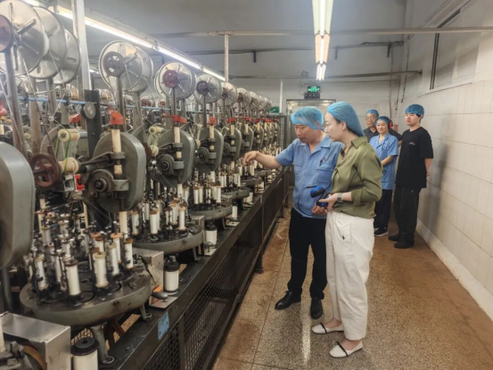 調(diào)研首日,周曉瑩詳細(xì)查看了富安繅絲廠和織綢廠的生產(chǎn)流程,深入了解原料處理、織造工藝及產(chǎn)品質(zhì)量控制情況。隨后前往海安蘇豪蠶絲被車間,仔細(xì)詢問生產(chǎn)運(yùn)營(yíng)、產(chǎn)品開發(fā)及市場(chǎng)銷售等方面的工作,充分肯定一線單位在工藝傳承與品質(zhì)提升方面取得的成效。