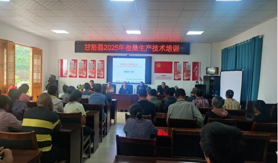 活動(dòng)采用“理論培訓(xùn)+現(xiàn)場(chǎng)指導(dǎo)”模式開(kāi)展。上午,專(zhuān)家團(tuán)在田壩鎮(zhèn)羅村群蠶桑種植基地開(kāi)班授課,全鎮(zhèn)30余名蠶桑種養(yǎng)殖大戶(hù)、技術(shù)骨干及村干部參加培訓(xùn)。專(zhuān)家圍繞蠶病綜合防控技術(shù)、桑的營(yíng)養(yǎng)特性及在畜禽水產(chǎn)養(yǎng)殖中的應(yīng)用、蠶產(chǎn)業(yè)現(xiàn)狀與趨勢(shì)、優(yōu)質(zhì)蠶種選擇、桑葉高產(chǎn)栽培、病蟲(chóng)害綠色防控、蠶室調(diào)控、科學(xué)飼養(yǎng)及蠶繭收烘提質(zhì)等內(nèi)容系統(tǒng)講解,并結(jié)合甘洛氣候、土壤及生產(chǎn)實(shí)際給出針對(duì)性建議,以通俗語(yǔ)言、生動(dòng)案例和詳實(shí)數(shù)據(jù)破解生產(chǎn)技術(shù)難題。