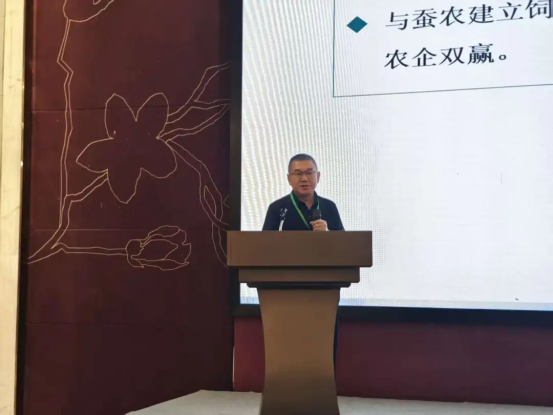 湖州桑田蠶業(yè)有限公司董事長田發(fā)芳作題為“全齡人工飼料工廠化養(yǎng)蠶的實(shí)踐路徑與未來展望”的交流報(bào)告