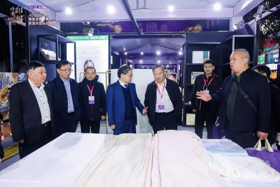 活動(dòng)期間,程明與唐仕成一行巡視了四川展區(qū),詳細(xì)了解各企業(yè)布展與洽談情況。本次組織企業(yè)參展,是協(xié)會(huì)推動(dòng)川渝絲綢產(chǎn)業(yè)協(xié)同發(fā)展的具體舉措之一。各參展企業(yè)集中展示了四川絲綢取得的最新成果,包括桑蠶資源綜合開發(fā)產(chǎn)品、新型絲綢家紡、手工絲綢工藝品等特色產(chǎn)品,充分體現(xiàn)了四川絲綢產(chǎn)業(yè)在延伸產(chǎn)業(yè)鏈、提升產(chǎn)品附加值方面的持續(xù)探索和實(shí)踐成效。