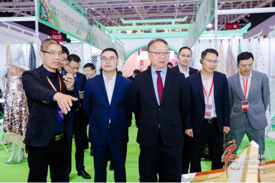 展會期間,中國紡織工業(yè)聯(lián)合會黨委書記、會長孫瑞哲,中國商業(yè)聯(lián)合會副會長馬巍,中國紡織工業(yè)聯(lián)合會秘書長夏令敏,中國紡織工業(yè)聯(lián)合會副會長李陵申、閻巖等行業(yè)領(lǐng)導(dǎo),以及柯橋區(qū)領(lǐng)導(dǎo)袁建、吳海洋、丁貴、李彰等參觀展會現(xiàn)場。在參觀過程中,孫瑞哲一行與參展商和采購商深入交流,詳細(xì)詢問產(chǎn)品研發(fā)、科技創(chuàng)新、市場拓展及智能化生產(chǎn)設(shè)備應(yīng)用等情況,認(rèn)真了解企業(yè)在國際市場開拓、綠色轉(zhuǎn)型實踐與時尚創(chuàng)意設(shè)計等方面取得的創(chuàng)新成果,鼓勵企業(yè)堅定發(fā)展信心、搶抓“雙循環(huán)”機(jī)遇,持續(xù)深化產(chǎn)業(yè)鏈協(xié)同創(chuàng)新,打造競爭優(yōu)勢,探尋發(fā)展增量,不斷提升柯橋紡織的國際影響力和時尚話語權(quán)。